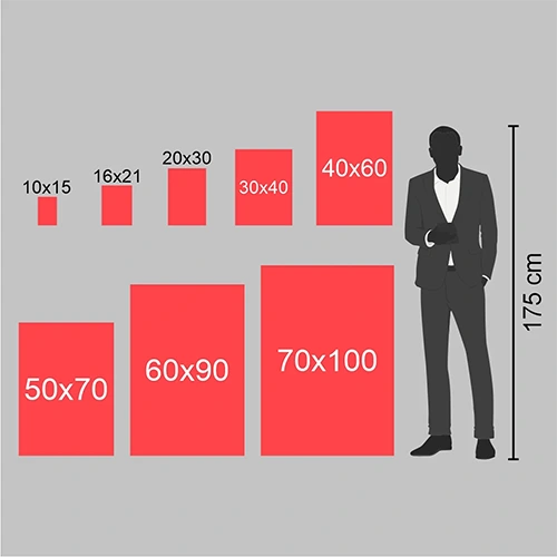 * توجه کنید ابعادی که مشاهده میکنید ابعاد اثری میباشد که درون قاب قرار میگیرد * راهنمای انتخاب سایز در خرید قاب عکس:
