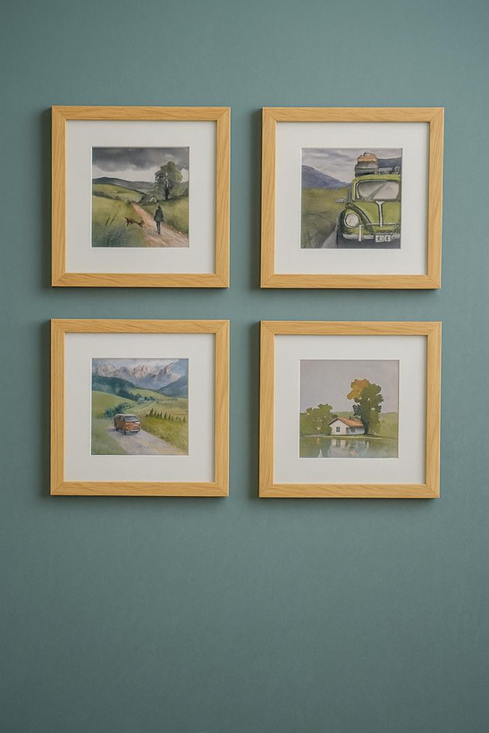 با پکیج ۴تایی قابهای هنری زنزو، زیبایی طبیعت را به دیوار خانهتان بیاورید. این مجموعه شامل چهار قاب چوبی دستساز با طراحی مینیمال و رنگ طبیعی چوب است که هر یک میزبان یک اثر آبرنگی با موضوعاتی چون جاده، طبیعت، سفر و سکوت روستاییاند. قابها با پاسپارتو سفید ضخیم و شیشه محافظ ارائه میشوند تا جلوهای حرفهای و ماندگار به فضای شما ببخشند